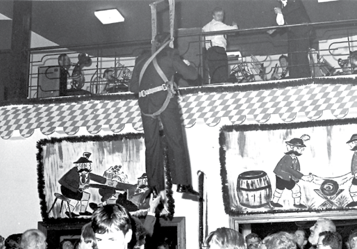 Ellbogengesellschaft 1984Die Gästeliste wuchs im Laufe der Jahre von anfänglich 300 auf über 400 Teilnehmer an, kein Problem, denn es gehört zum Charakter eines solchen Festes, enge Tuchfühlung zu seinem Nachbarn zu halten. "Linkshänder werden an einen separaten Tisch gesetzt" ulkte jemand, "damit man sich beim Essen nicht ins Gehege kommt". |